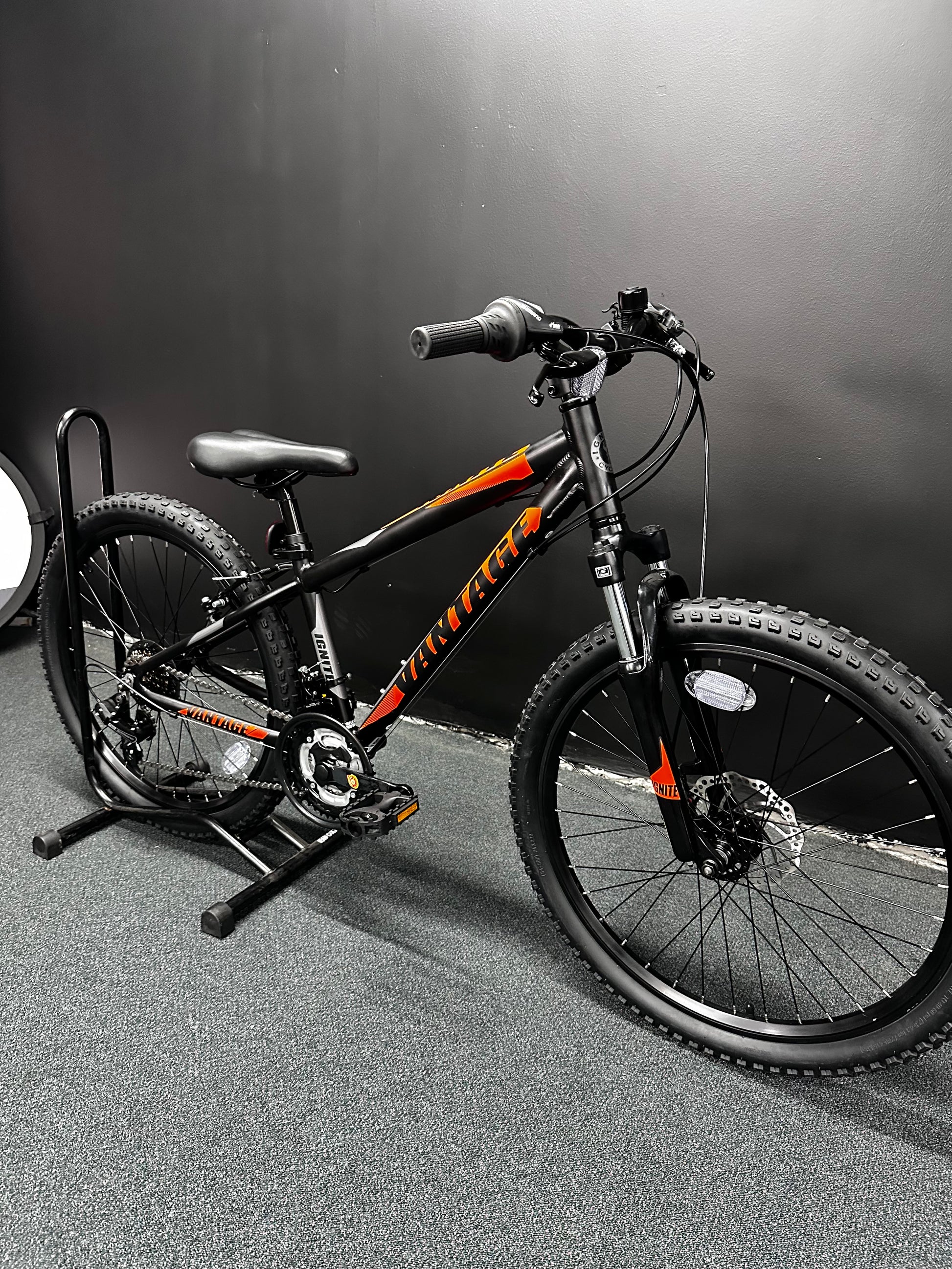 24″ Wheel is perfect for those young kids before they move to adult bikes, the Ignite Vantage has an Alloy frame with Suntour Suspension Fork backed up with Shimano 18 Speed Revoshift Gearing with Rear Alloy V-Type Brake and Front Mechanical Disc Brake
